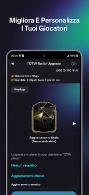 Potenzia e plasma i tuoi campioni come mai prima d'ora. L'EA SPORTS FC™ 26 Companion App ti permette di affrontare le Sfide Creazione Rosa in qualsiasi momento, scambiando gli elementi giocatore non necessari per sbloccare nuove stelle, pacchetti emozionanti o elementi di personalizzazione unici che distingueranno il tuo club. Ma non finisce qui: porta i tuoi giocatori a un nuovo livello con le Evoluzioni. Migliora le loro statistiche e goditi le esclusive Evoluzioni estetiche, rendendo le carte dei tuoi giocatori preferiti visivamente mozzafiato e tatticamente superiori.