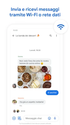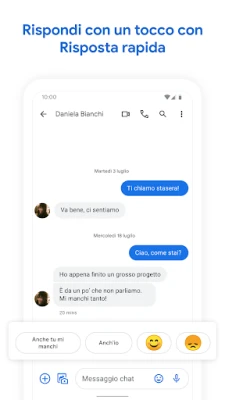 L'intelligenza artificiale eleva la tua capacità espressiva: componi il messaggio ideale con la magia dei suggerimenti di Scrittura Magica e le funzionalità AI più innovative di Google Messaggi. Sperimenta una fluidità d'uso eccezionale tra tutti i tuoi dispositivi: avvia una conversazione sul tuo smartphone e continua senza interruzioni sul tuo tablet o computer. L'esperienza si estende anche al tuo polso, con la piena compatibilità per Wear OS. Google Messaggi è progettato per offrirti una comunicazione più completa, sicura ed espressiva, adattandosi al tuo stile di vita. Si prega di notare che la disponibilità delle funzionalità e della tecnologia RCS può variare in base al mercato, all'operatore e al dispositivo.