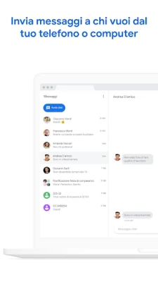 Scopri Google Messaggi, l'app ufficiale Google che sta rivoluzionando la messaggistica. Basata su RCS, ti permette di inviare foto e video in alta risoluzione, partecipare a chat di gruppo dinamiche e comunicare senza problemi con tutti, anche su iPhone. Vivi un'esperienza di messaggistica moderna e superiore.
