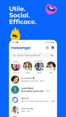 Con Messenger, il modo in cui ti connetti e comunichi si trasforma in un'esperienza senza confini. Che tu voglia ritrovarti con amici e familiari su Facebook o rimanere in contatto con persone care in qualsiasi parte del mondo, questa piattaforma ti permette di farlo con estrema facilità, eliminando la necessità di un numero di telefono. È il tuo ponte digitale per mantenere vivi i legami più importanti, garantendo conversazioni fluide e immediate ovunque tu sia.
