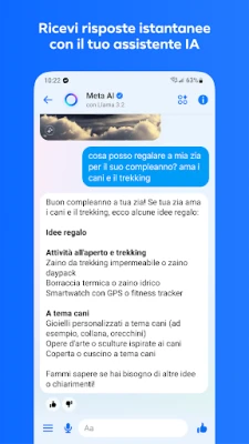 Ma Messenger è molto più di un semplice spazio di conversazione. Grazie all'integrazione di Meta AI, hai a disposizione un assistente intelligente capace di rispondere a ogni tua domanda, offrirti consigli preziosi e persino aiutarti con la creatività, generando e modificando immagini con la tua guida. Le tue interazioni visive raggiungono nuovi livelli: condividi foto in alta definizione che catturano ogni dettaglio e crea album condivisi per rivivere insieme i momenti speciali, dalle avventure di viaggio ai ricordi di famiglia. Inoltre, inviare documenti come Word, PDF o Excel, fino a 100 MB, è ora semplice e diretto all'interno delle tue chat.
