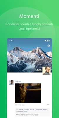 Dai spazio alla tua creatività e rendi ogni chat un'esperienza unica. La vasta galleria di sticker animati ti offre migliaia di opzioni divertenti, inclusi i personaggi più amati di film e cartoni, per esprimere ogni sfumatura del tuo umore. E se vuoi andare oltre, crea sticker personalizzati direttamente dai tuoi selfie per un tocco inconfondibile. Condividi i tuoi momenti più preziosi con foto e video nella sezione "Momenti" e aggiorna rapidamente i tuoi contatti con il tuo "Stato" del giorno. Non sai come dare indicazioni? La condivisione della posizione in tempo reale ti permette di far sapere esattamente dove ti trovi con un semplice tocco.