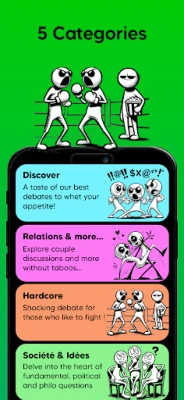 Scopri YADEBA, l'app ideale per dibattiti divertenti, intensi e talvolta tabù con amici, in coppia o alle feste. Con oltre 1600 argomenti in 5 categorie, non rimarrai mai senza spunti per mettere alla prova le tue opinioni e conoscere meglio chi ti circonda.